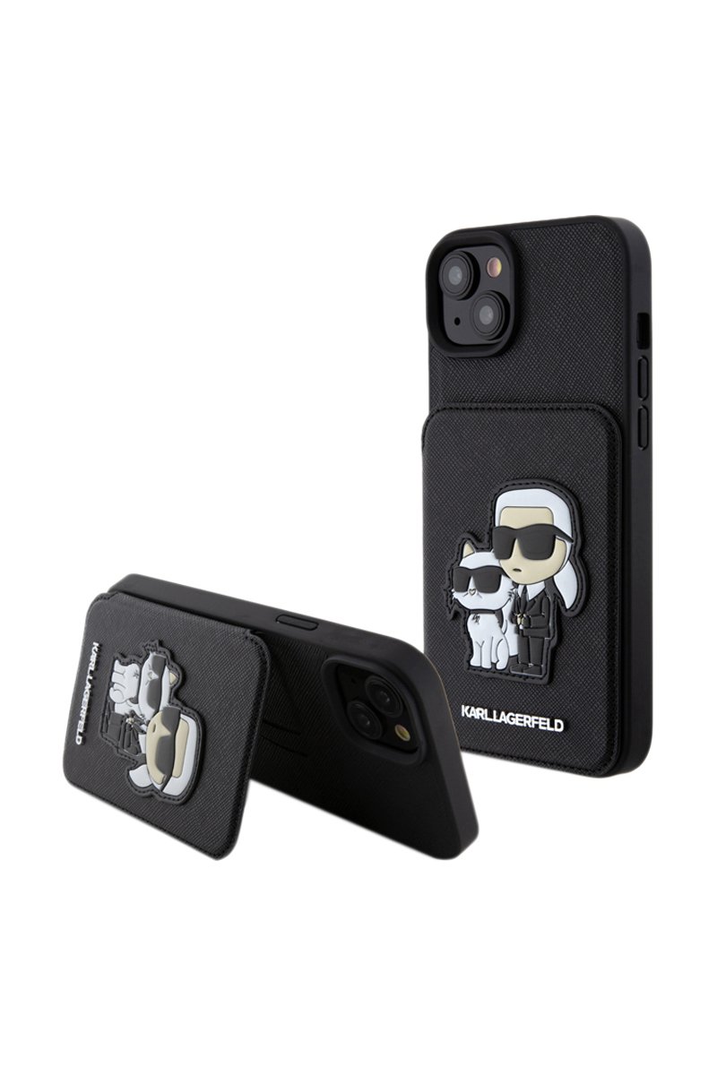 Decore e proteja o seu iPhone 15 Plus com esta remarcável capa Saffiano assinada Karl Lagerfeld.