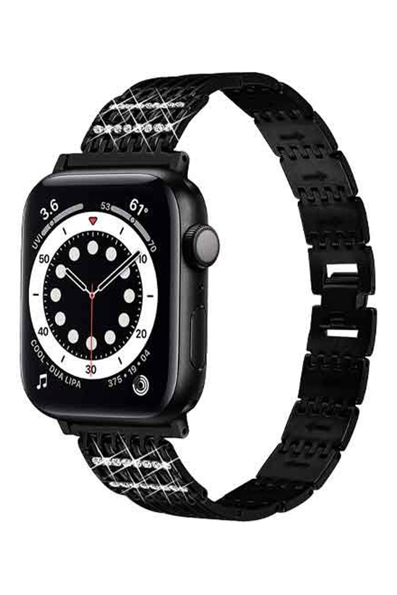 Bracelete Apple Watch 38/40 & 41 mm - Aço inoxidável preto e strass
