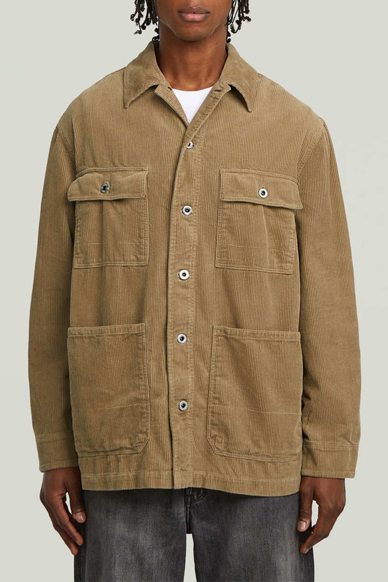 O design deste casaco Chore apresenta bolsos com aba no peito. Os seus botões robustos com cauda proporcionam um fecho seguro. Este casaco de bombazina tem bolsos com aplicações na cintura. As mangas são abertas e têm dois botões que permitem ajustar a largura.