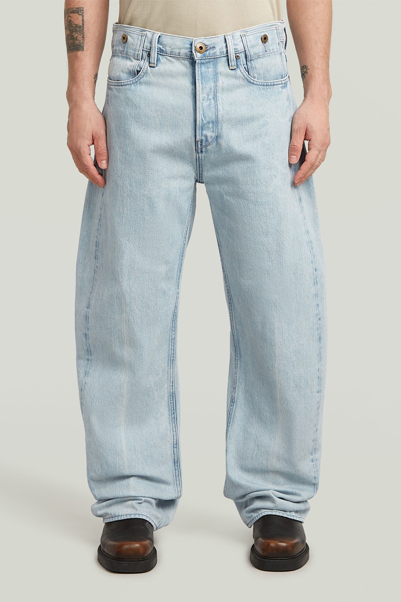 As calças de ganga Bend 3D fazem parte da coleção Anatomic Denim. Apresentam uma forma única e contemporânea graças à peça adicional no interior da perna e à pinça profunda na anca. Este modelo amplo de cintura média possui um bolso de moeda duplo com botão de haste.