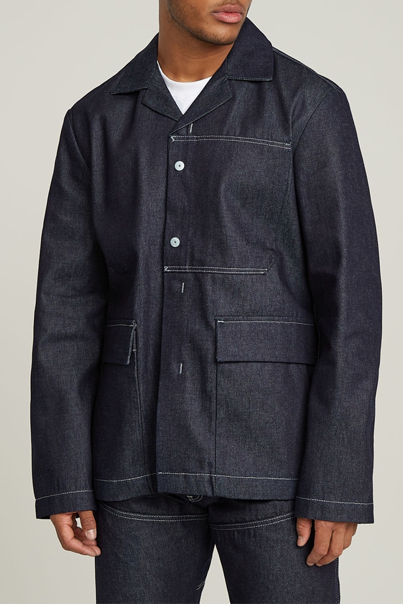 O casaco em ganga Marseille apresenta um corte direito com fecho simples com botões de pressão ocultos na frente. Um bolso lateral no peito fecha-se com um botão de pressão. Os bolsos na cintura têm uma aba fechada por botões de pressão, tal como à frente.