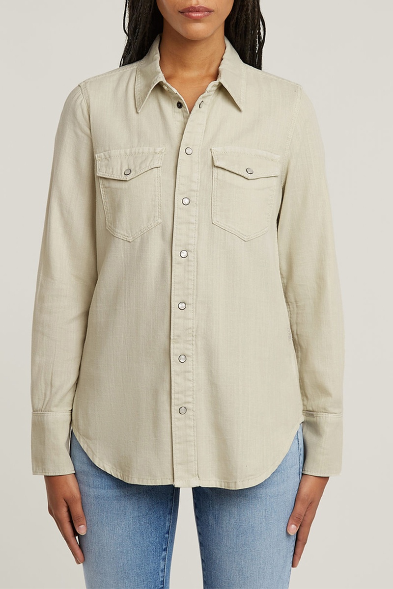 A camisa Slim Western tem um fecho de pressão e mangas compridas.
