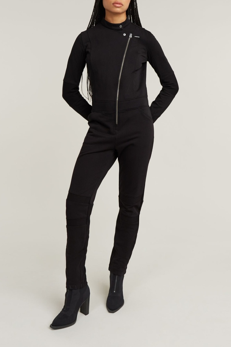 O macacão Biker Slim Sweat apresenta um design justo slim. Um fecho zip sólido está posicionado diagonalmente na frente. Gola com aba fechada por botões de pressão. As aplicações em malha canelada adicionam um belo acabamento.