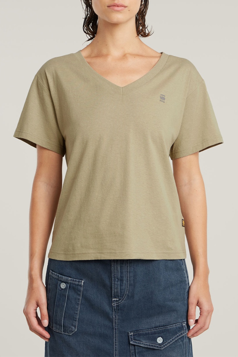 Open V Relaxed apresenta um corte direito e um decote em V de corte amplo.