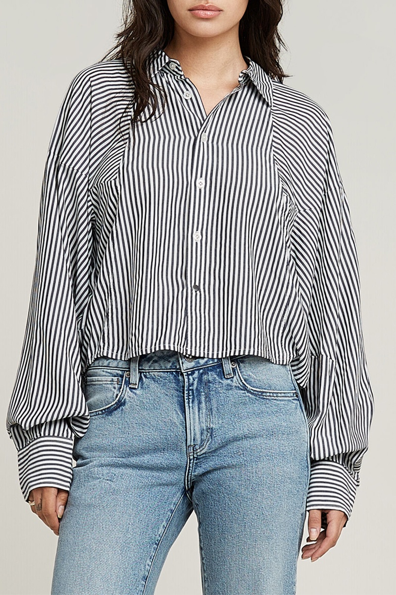 A camisa Macro Balloon combina um corte amplo descontraído e um comprimento encurtado. Costuras adicionais na manga adicionam volume a este modelo.