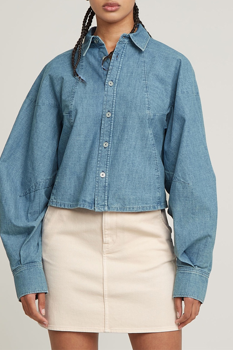 A camisa Macro Balloon combina um corte oversize descontraído e um comprimento encurtado. Pregas adicionais na manga adicionam volume a este modelo.