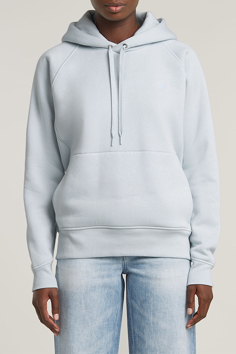 A sweat com capuz Premium Core 2.0 apresenta um corte direito. Os punhos canelados são realçados por uma aplicação curva. Um bolso kanguru foi costurado em toda a largura desta sweat com capuz.