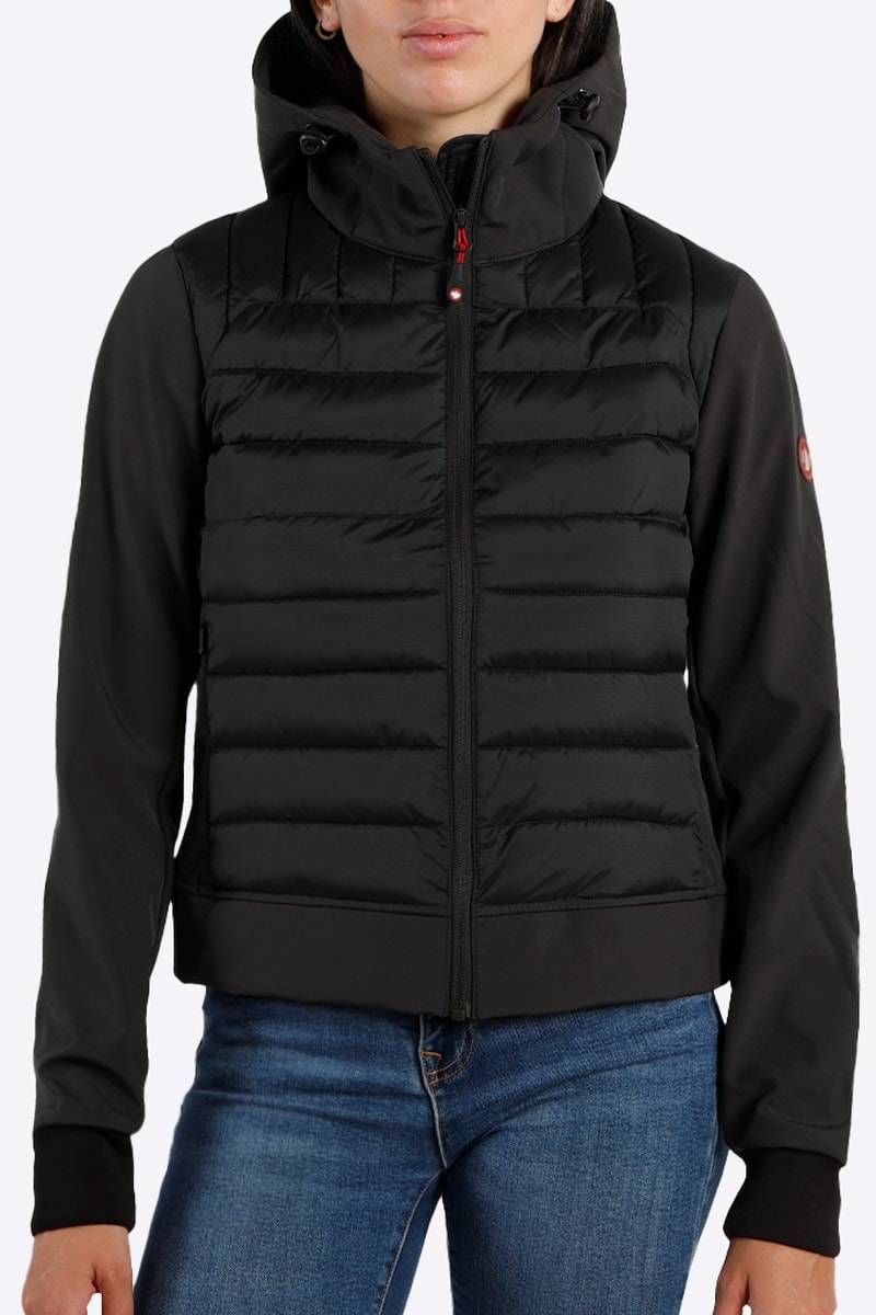 Blusão com capuz com atilhos de ajuste e travões de cordão.