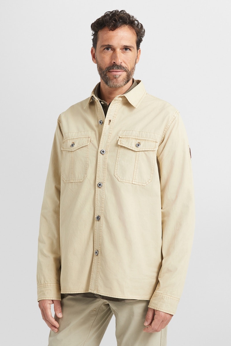 Sobrecamisa de mangas compridas pressionáveis 1 das quais com remendo e logótipo.