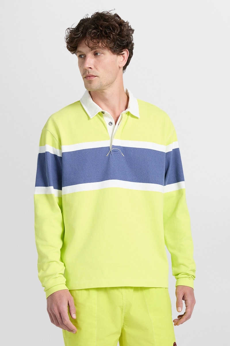 Polo de mangas compridas 1 das quais com remendo e logótipo.