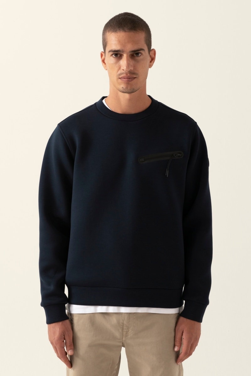 Sweat de mangas compridas 1 das quais com remendo e logótipo.