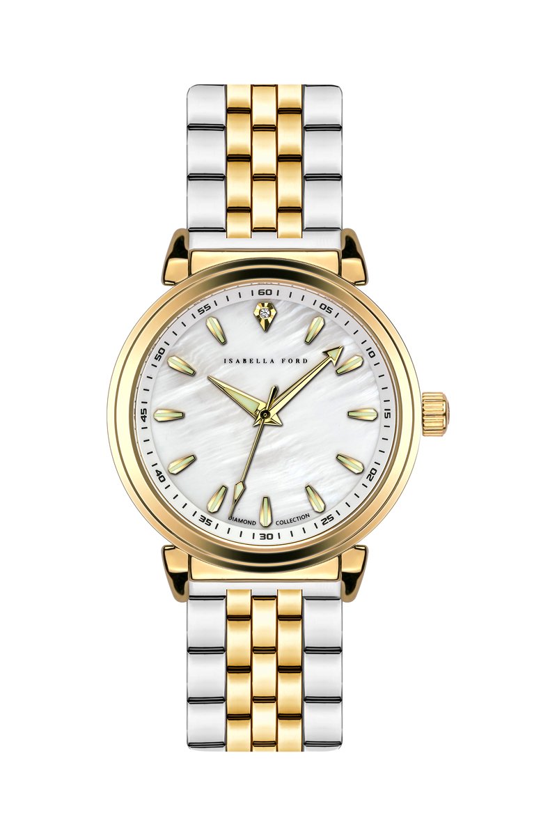 Relógio de quartzo em aço, diamante e madrepérola Barbara