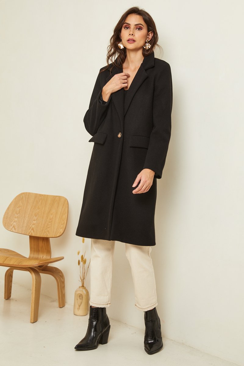 Sobretudo semi-comprido, corte direito.