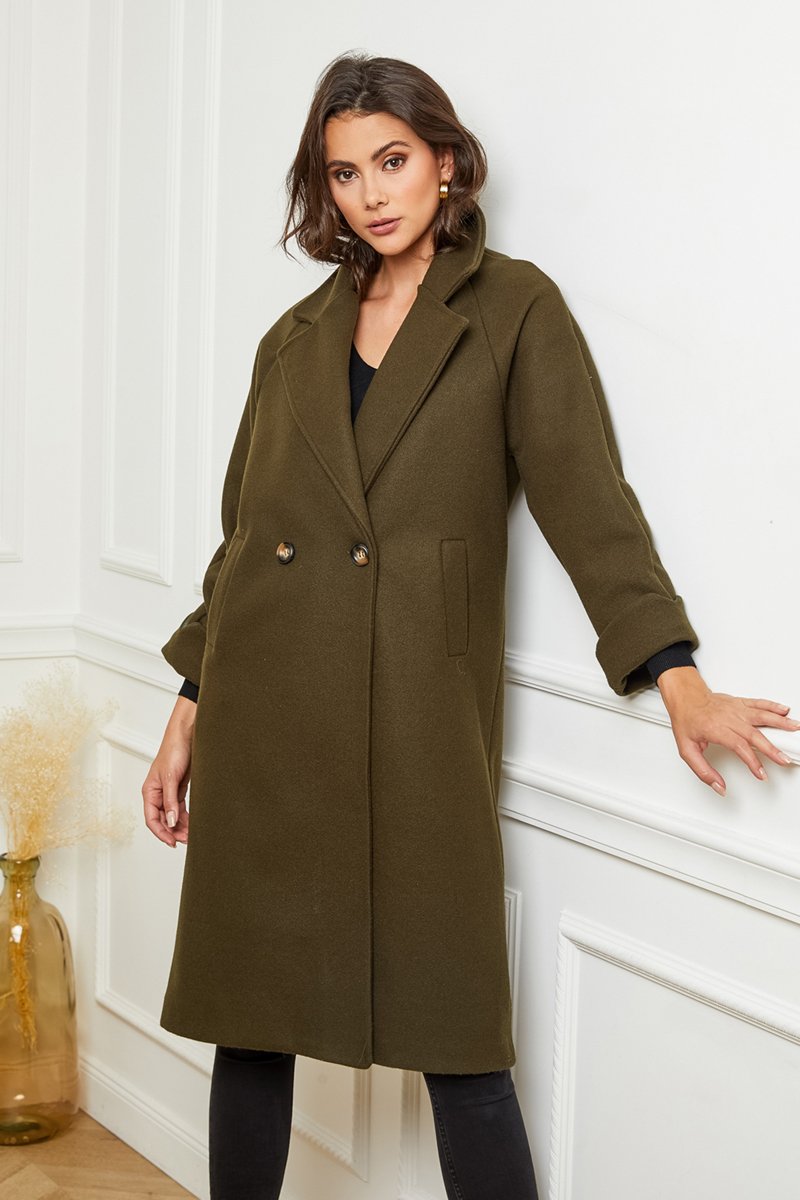 Sobretudo de mangas compridas com dobras.