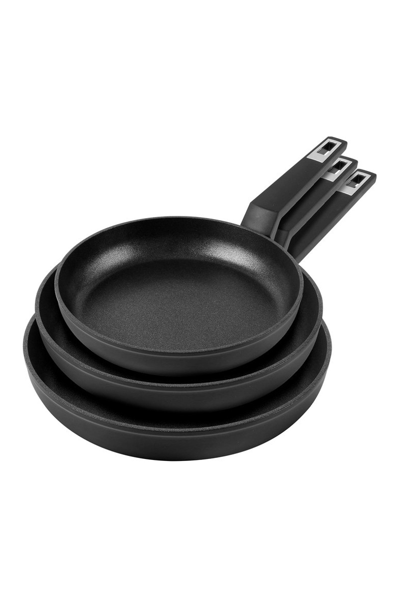 3 frigideiras de alumínio forjado.