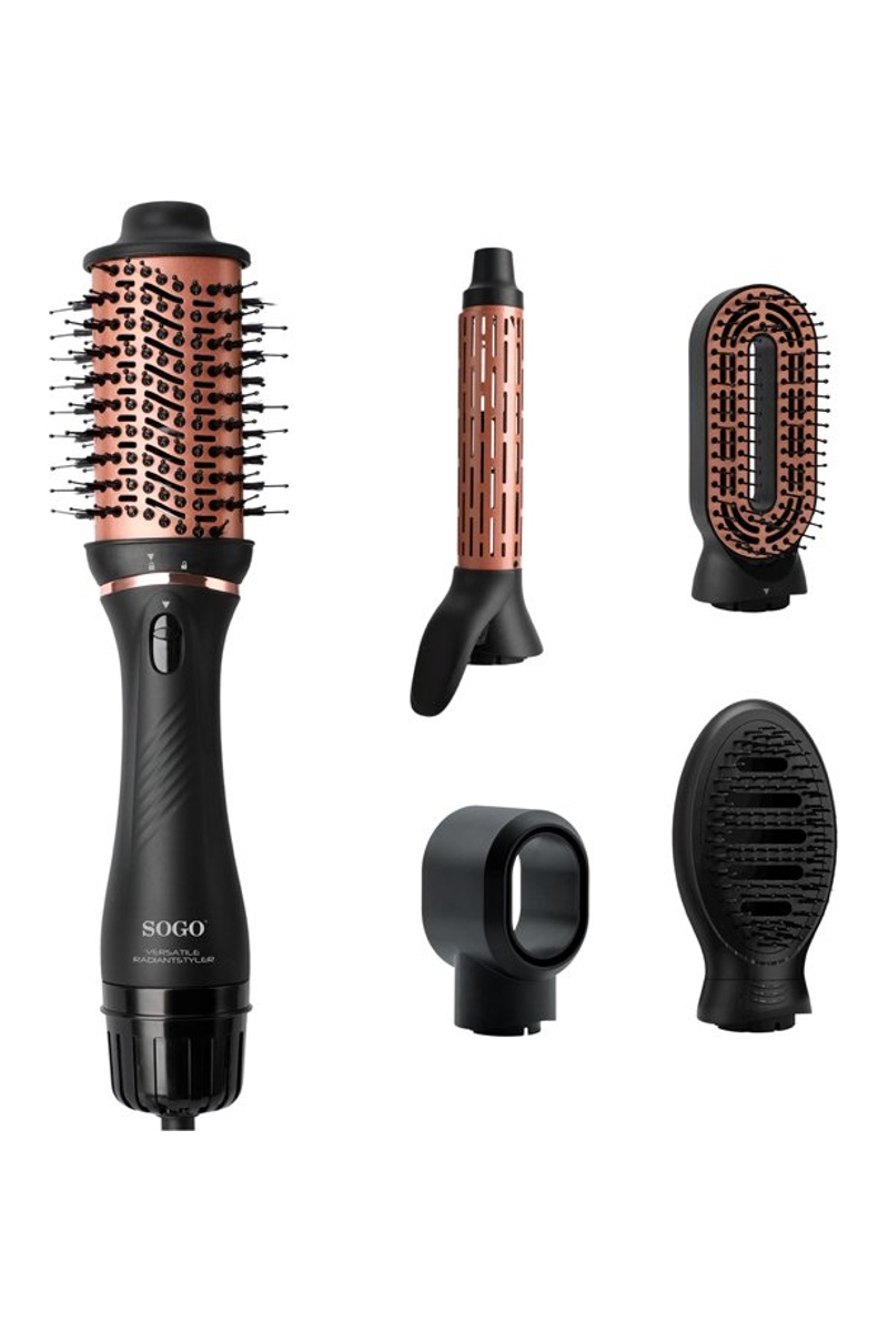 Inclui escova de cabelo, centro de design inovador oco, modelador de cabelo, escova amortecedora e alisador.