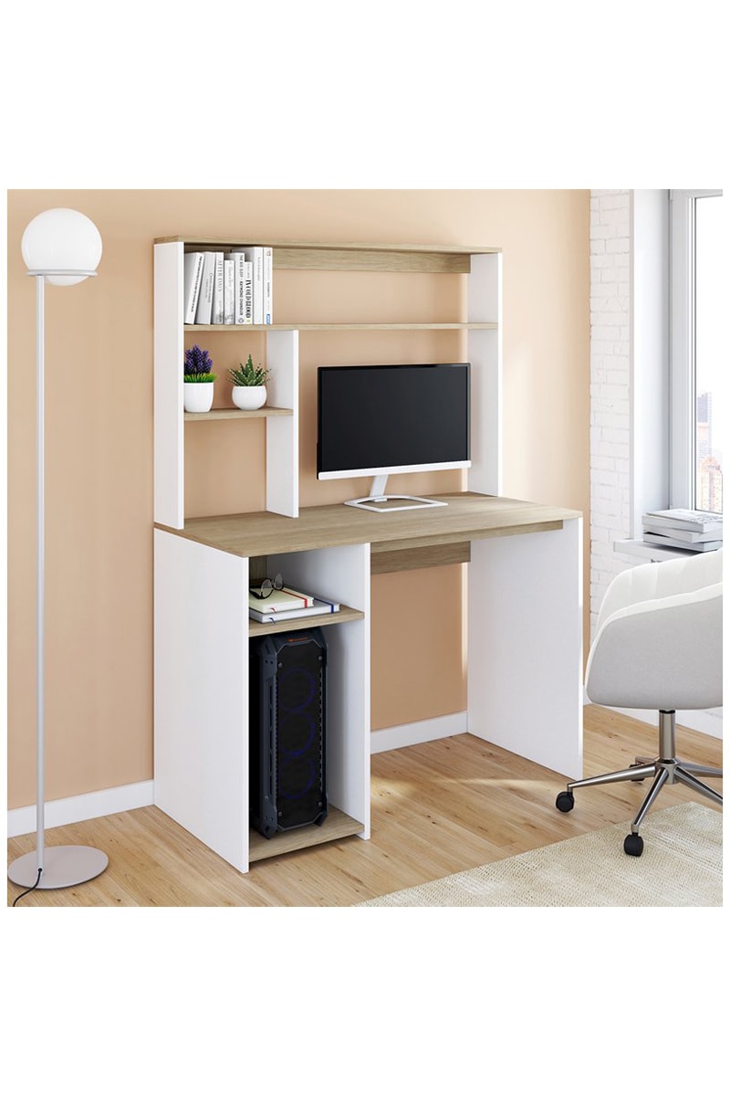 Secretária com prateleiras de arrumação Danny - Branco e castanho