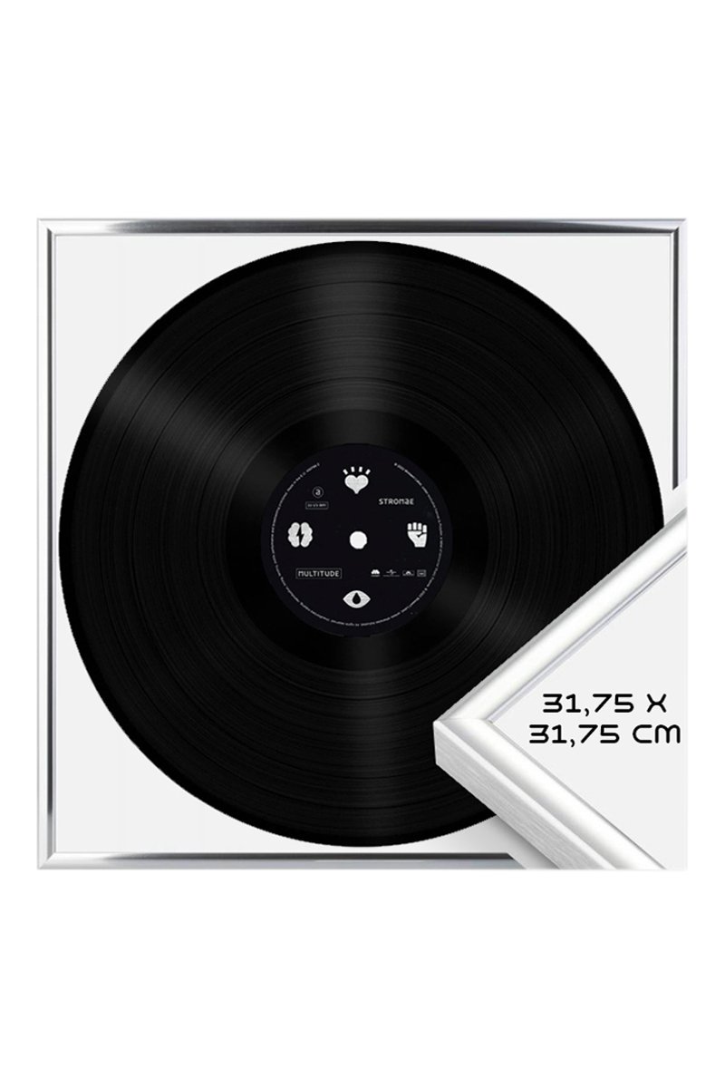 Concebido em alumínio escovado, este quadro foi especialmente desenvolvido para a exibição dos seus vinis de 33 rpm, com ou sem capa, para uma decoração mural única.