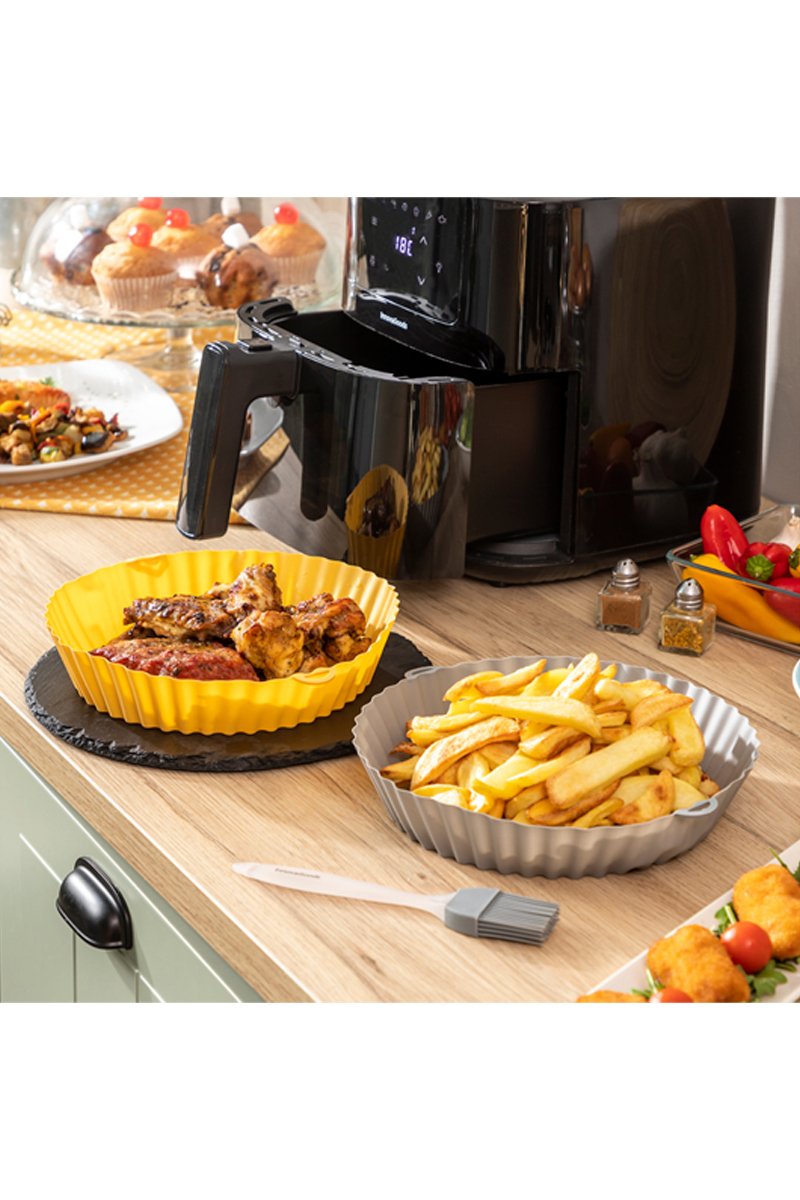 2 cestos de silicone e um pincel - Cinzento e preto