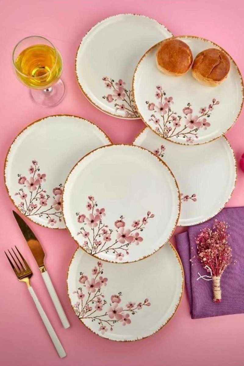 6 pratos de sobremesa em cerâmica - 20 x 20 x 2 cm