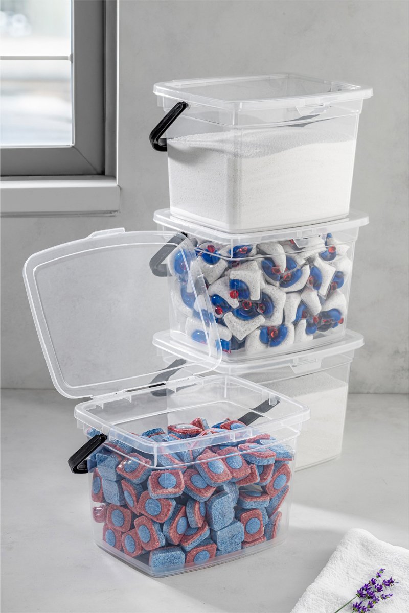 4 caixas de arrumação com pegas.