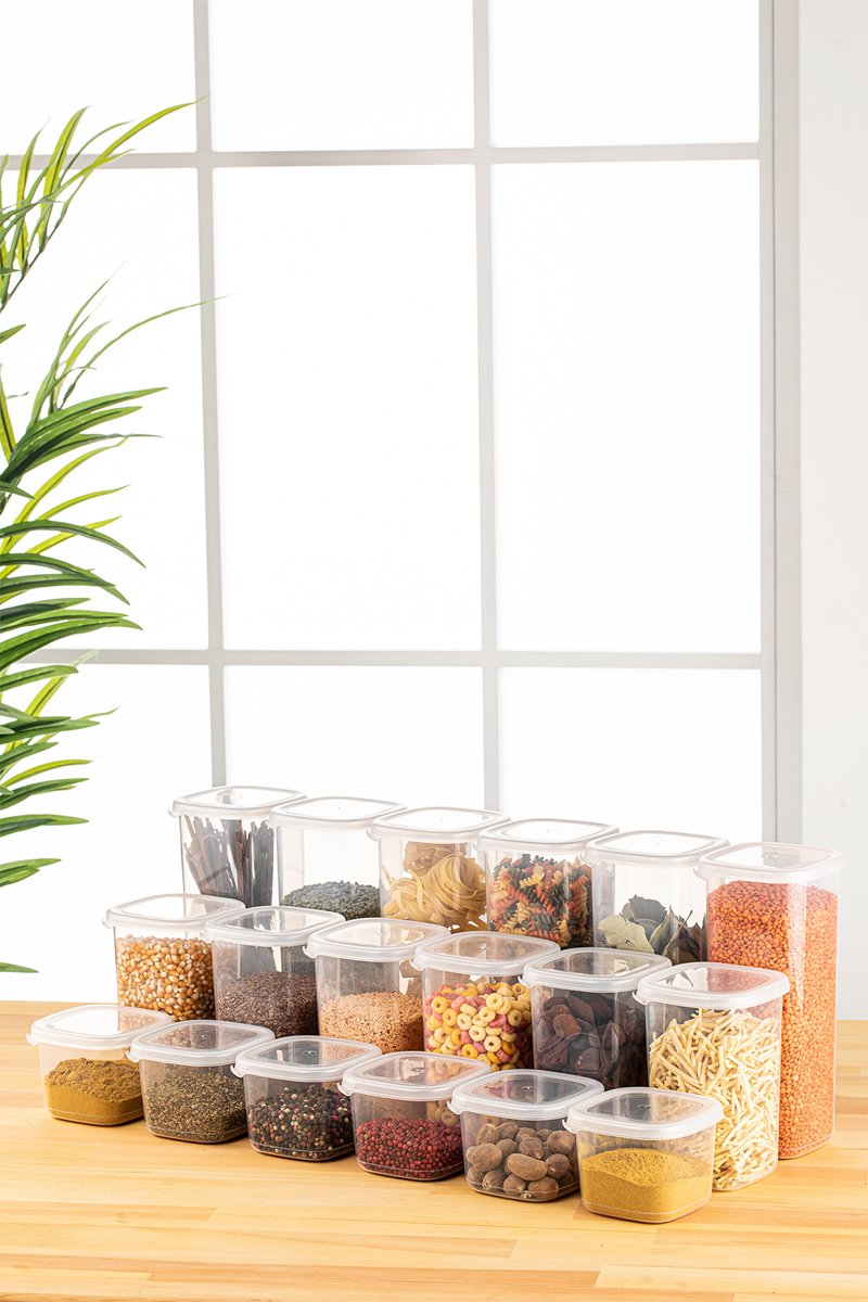 18 caixas de conservação com tampas - 6 x 550 ml / 6 x 1200 ml / 6 x 1750 ml