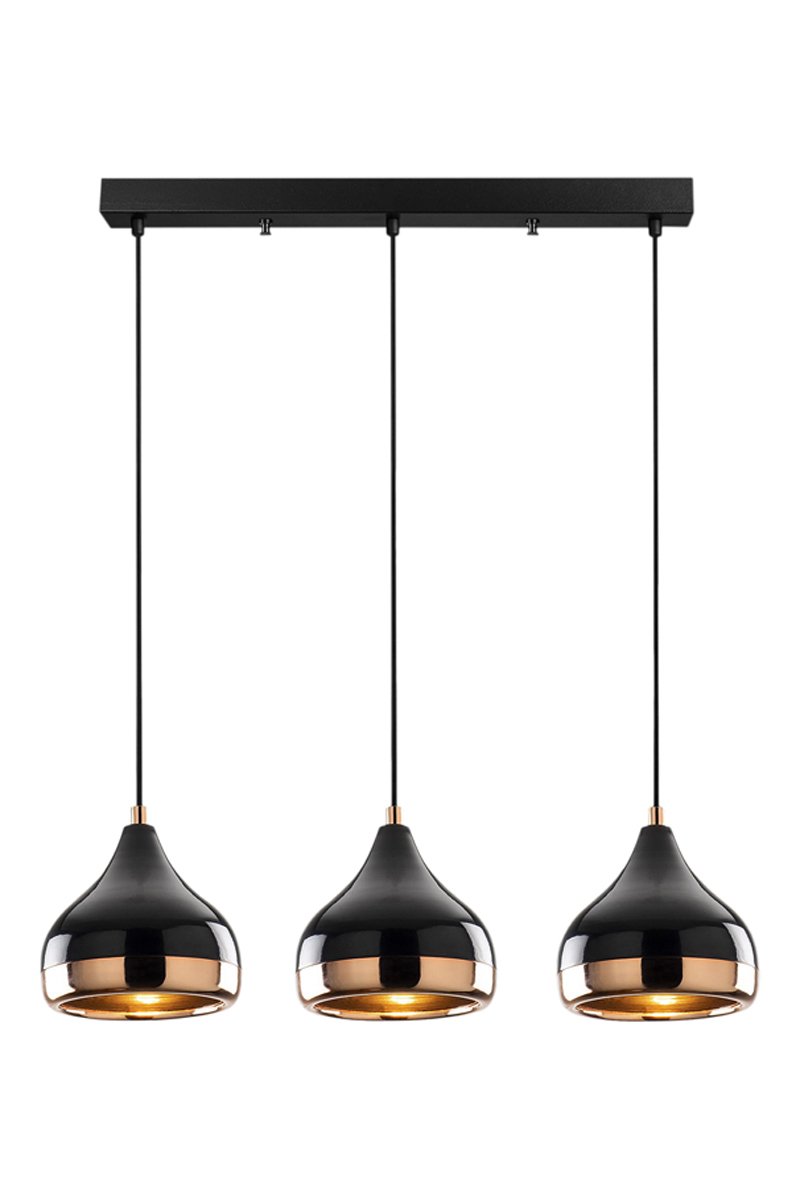 Candeeiro suspenso Yildo - Preto e acobreado - 3 x 40 W