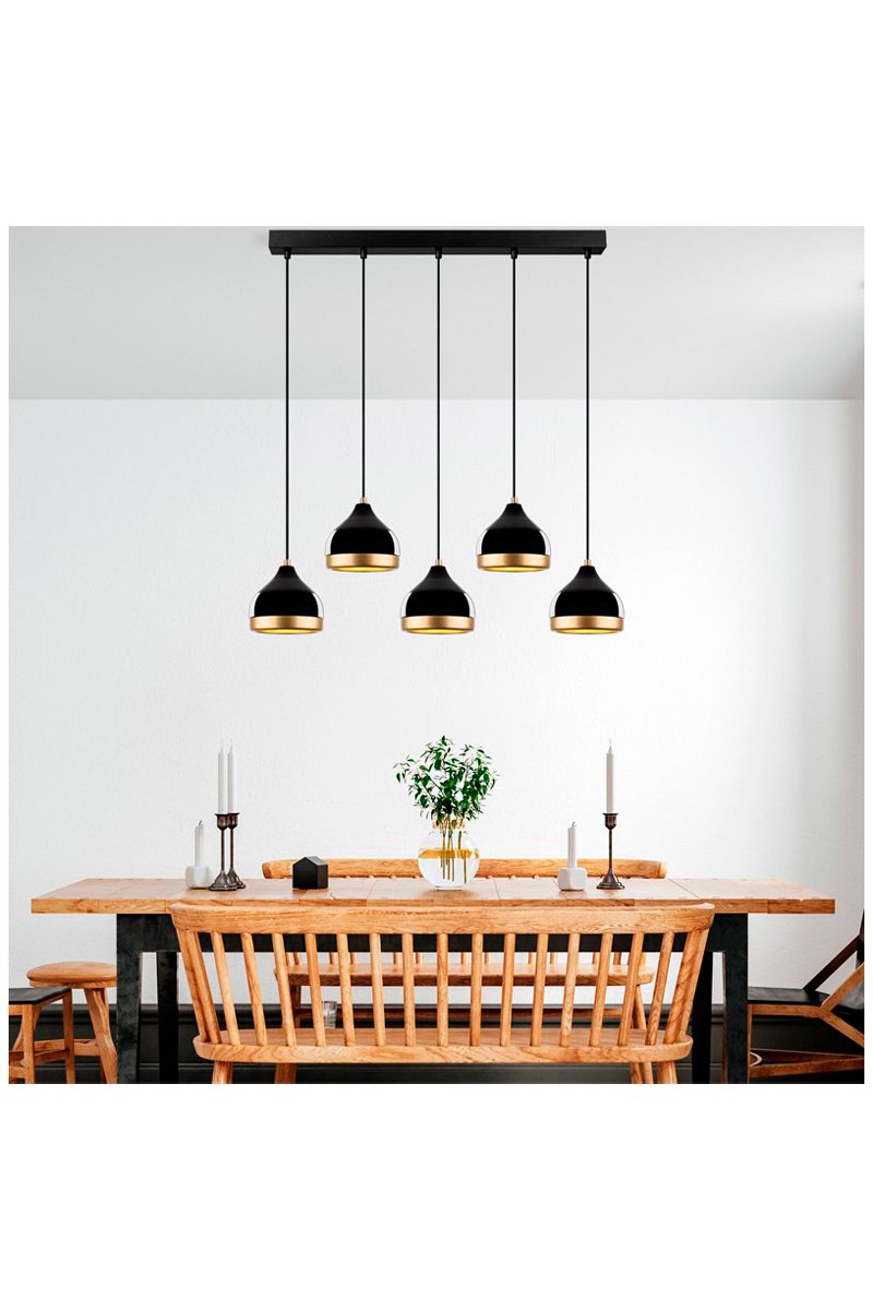 Candeeiro suspenso Yildo - Preto e dourado - 5 x 40 W