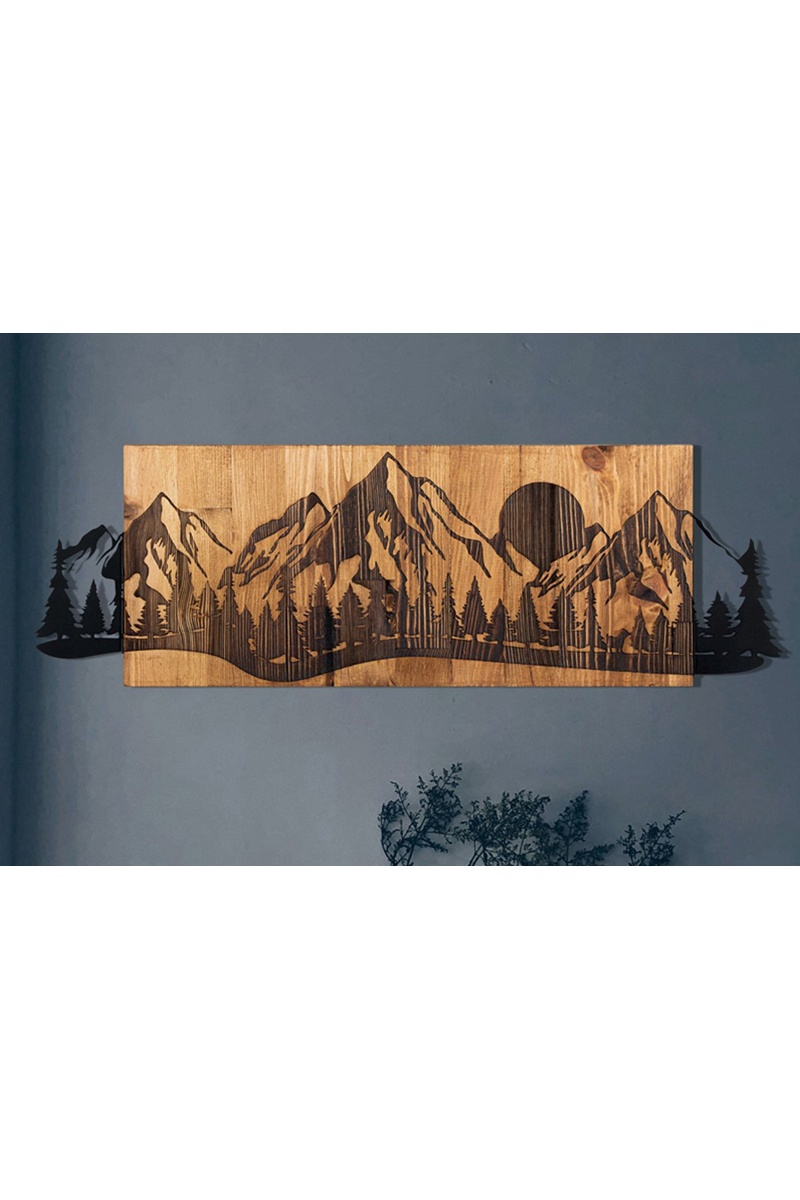 Decoração de parede em madeira Sundown - 75,5 x 24,5 cm - Preto e natural