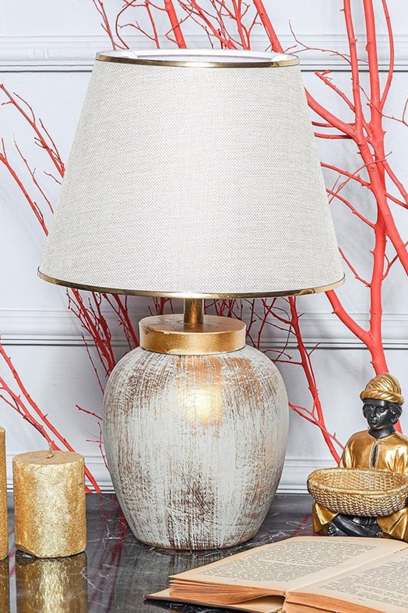Candeeiro de mesa - Creme e dourado