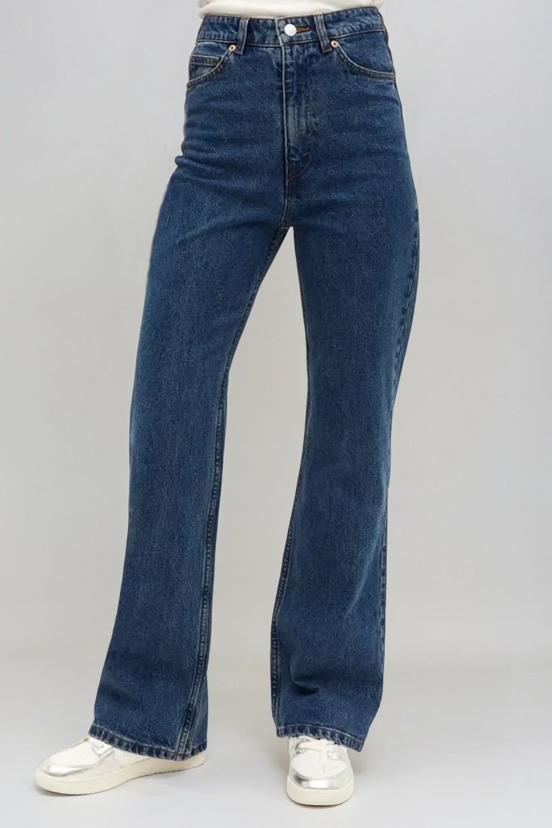 Calças de ganga cintura subida - Azul escuro - Monki