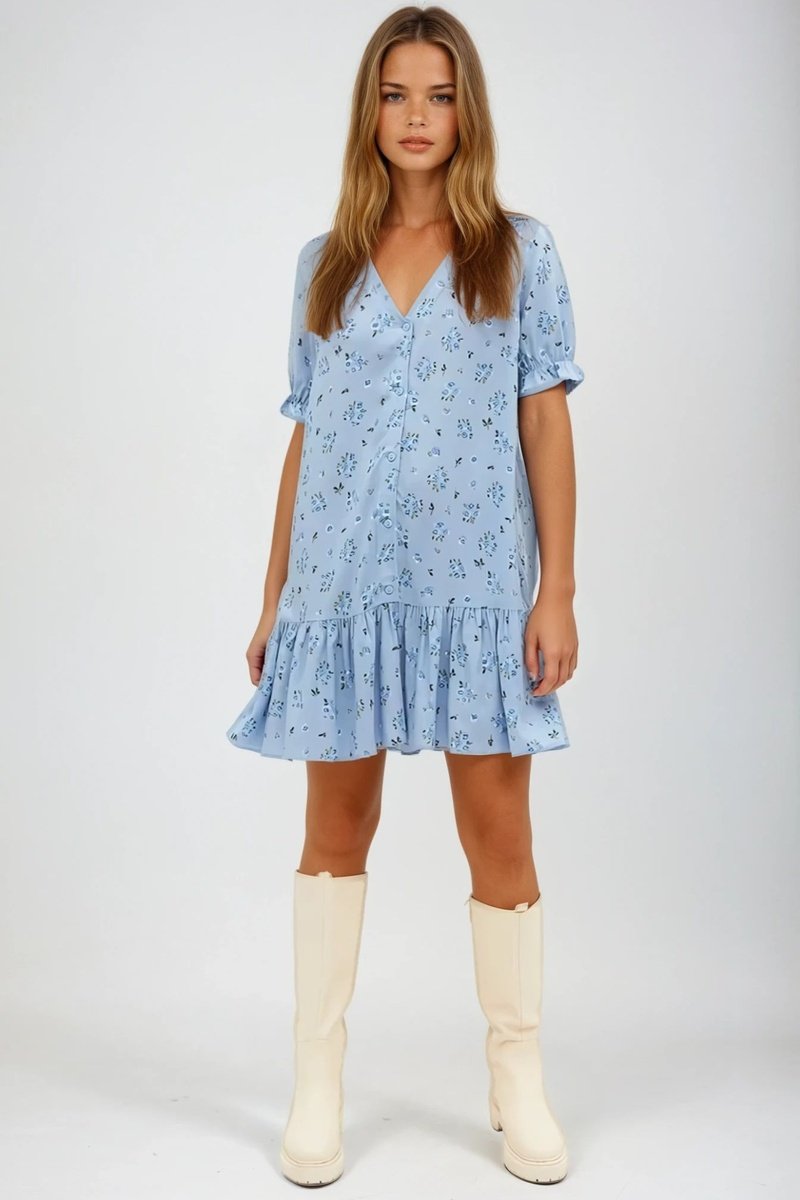 Vestido com folhos - Azul claro - Monki