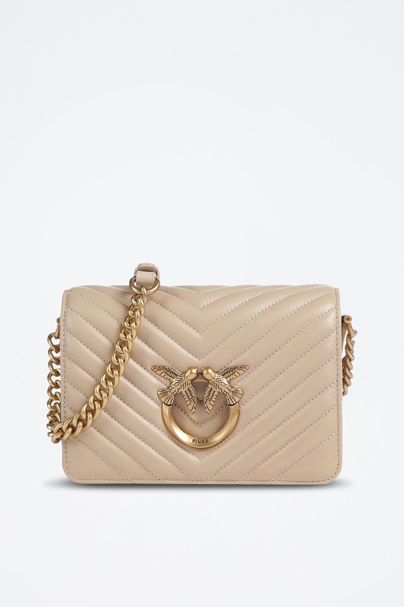 Mala de tiracolo de couro de carneiro Love Click Mini - Bege