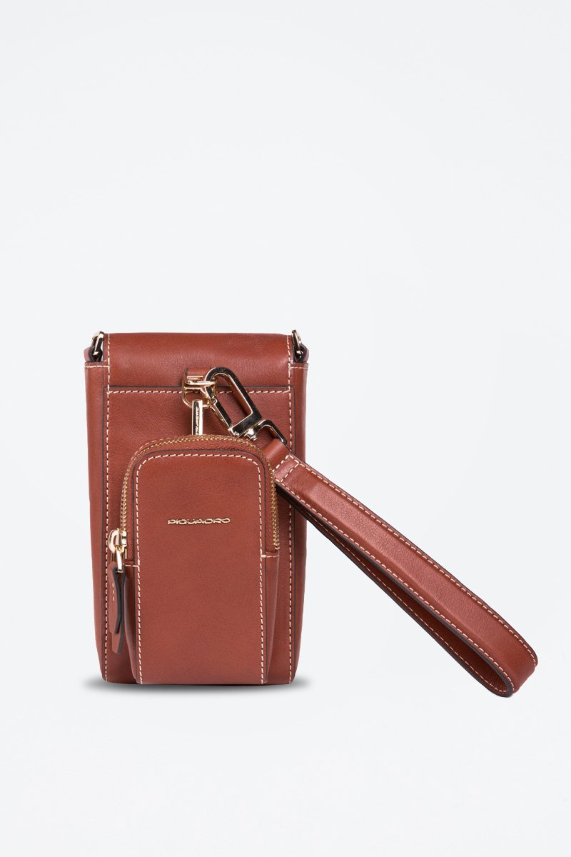 Mala a tiracolo para telemóvel em couro.