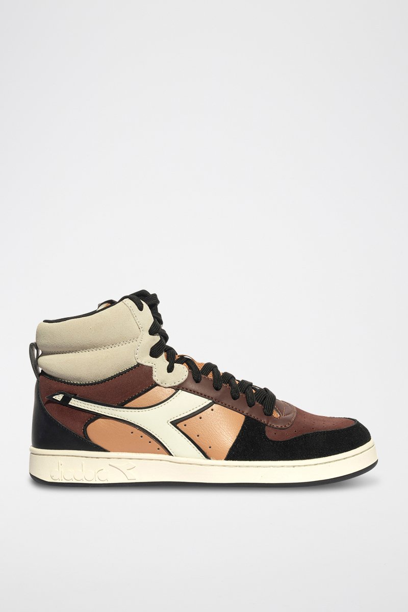 Sapatilhas subidas em couro Magic - Castanho e preto