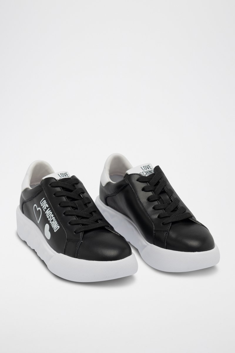 Sapatilhas com plataforma em couro - Preto