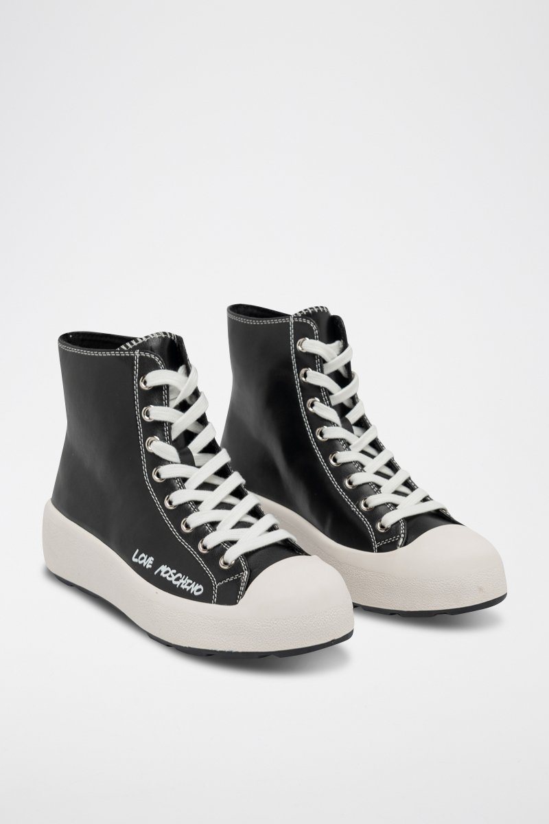 Sapatilhas subidas em couro - Preto