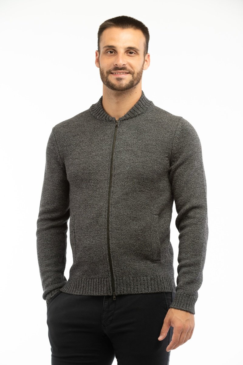 Casaco de malha slim em lã virgem - Antracite - Zanone