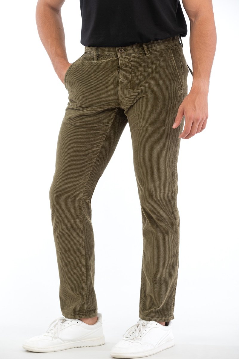 Calças slim em veludo.