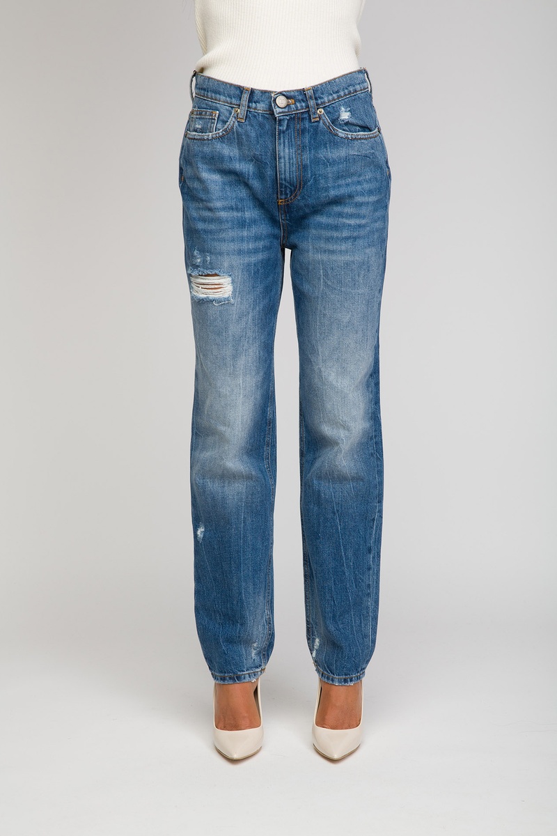 O modelo mede 1,71m e veste o artigo no tamanho 26 (IT).