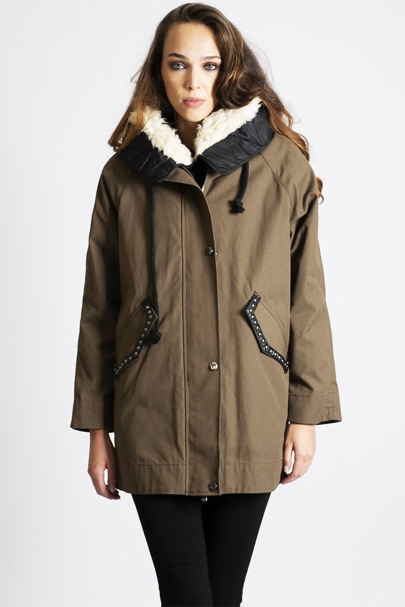 - Exterior: Parca com capuz e atilhos de ajuste.