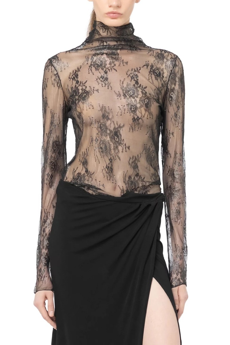 Top de renda de mangas compridas.