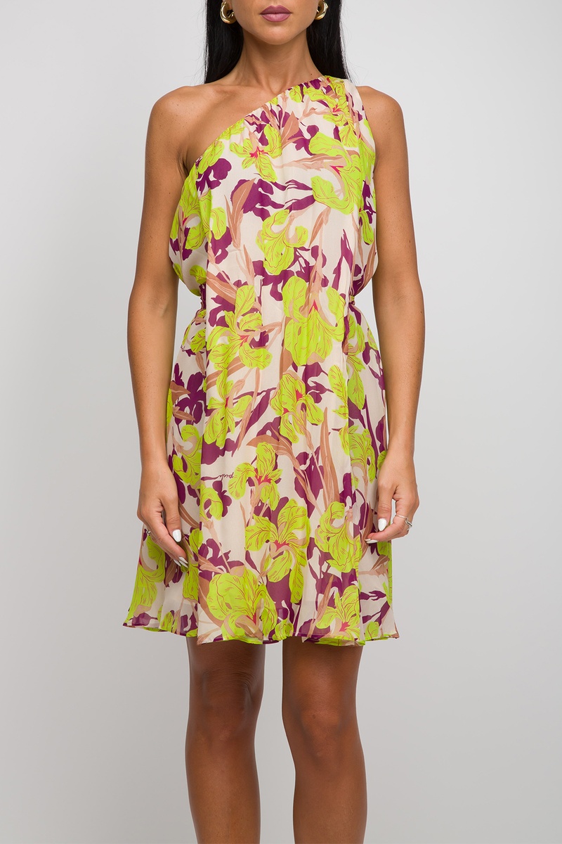 Vestido assimétrico - Bege e verde-lima