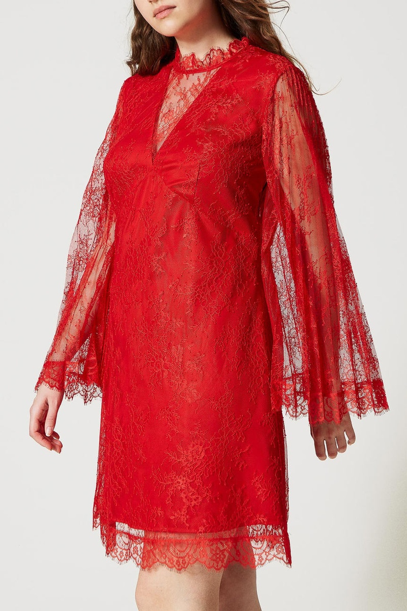 Vestido trapézio de renda - Vermelho