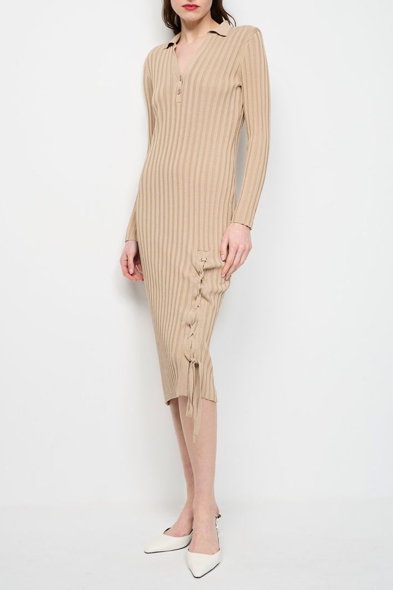 Vestido midi em malha canelada.