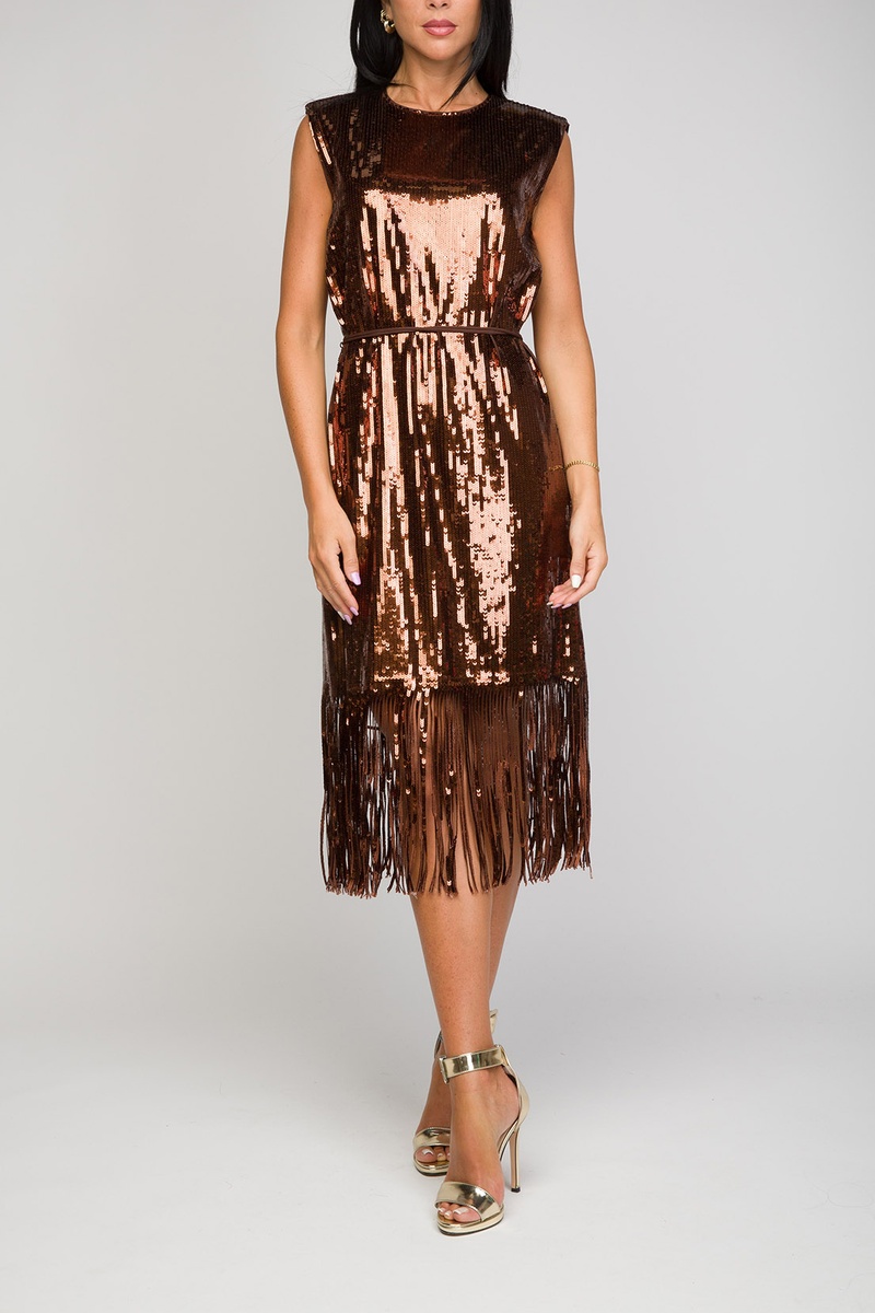 Vestido direito com lantejoulas.