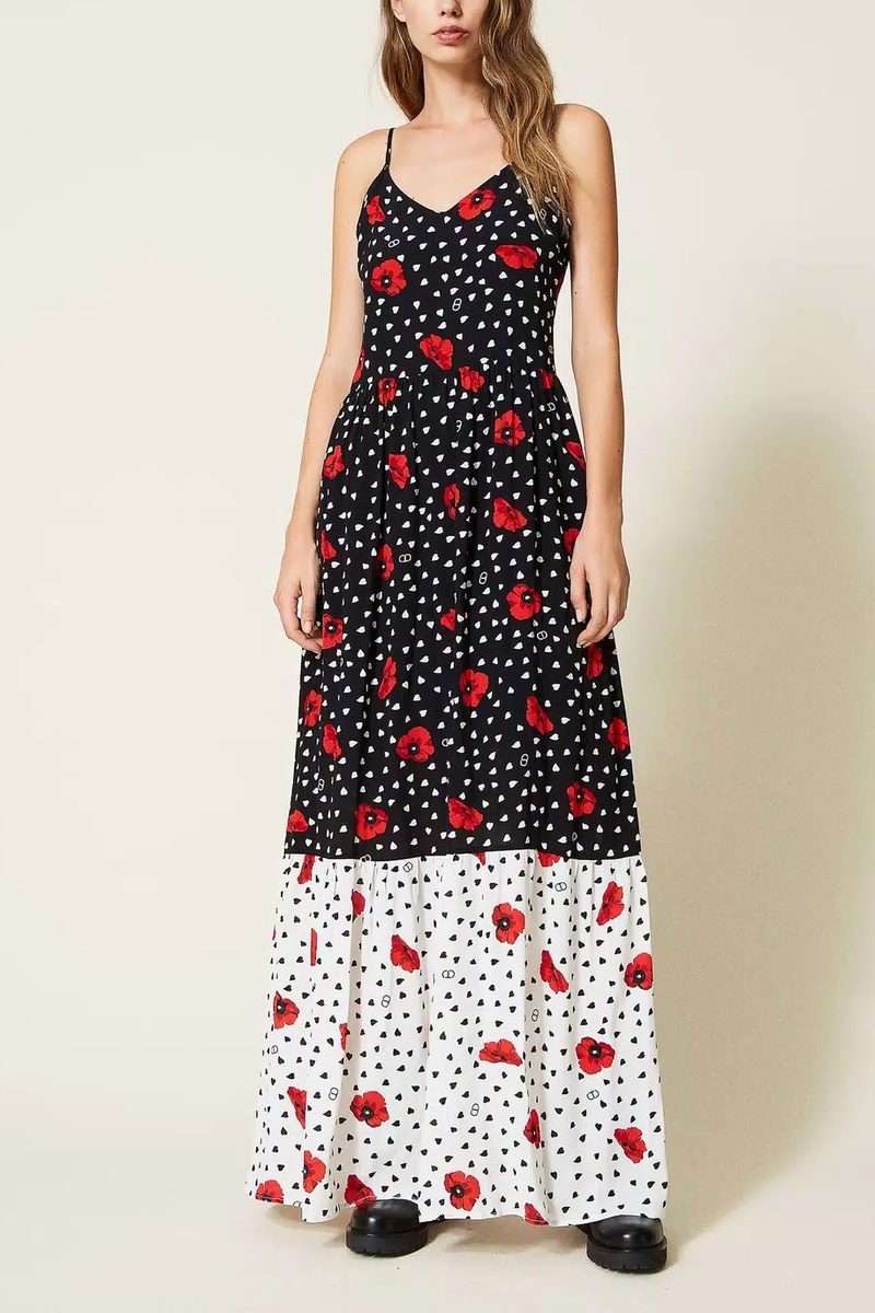 Vestido comprido - Branco e preto