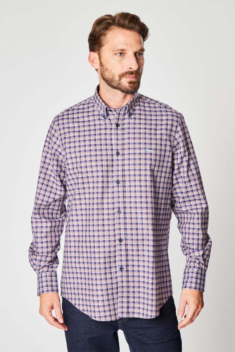 Camisa aos quadrados - Castanho e branco - Harmont & Blaine