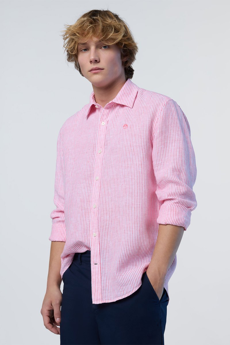 Camisa regular de linho de mangas compridas.