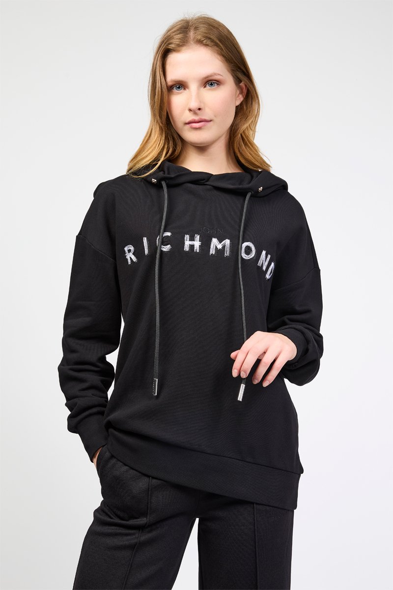 Sweat oversize com capuz e atilhos de ajuste.